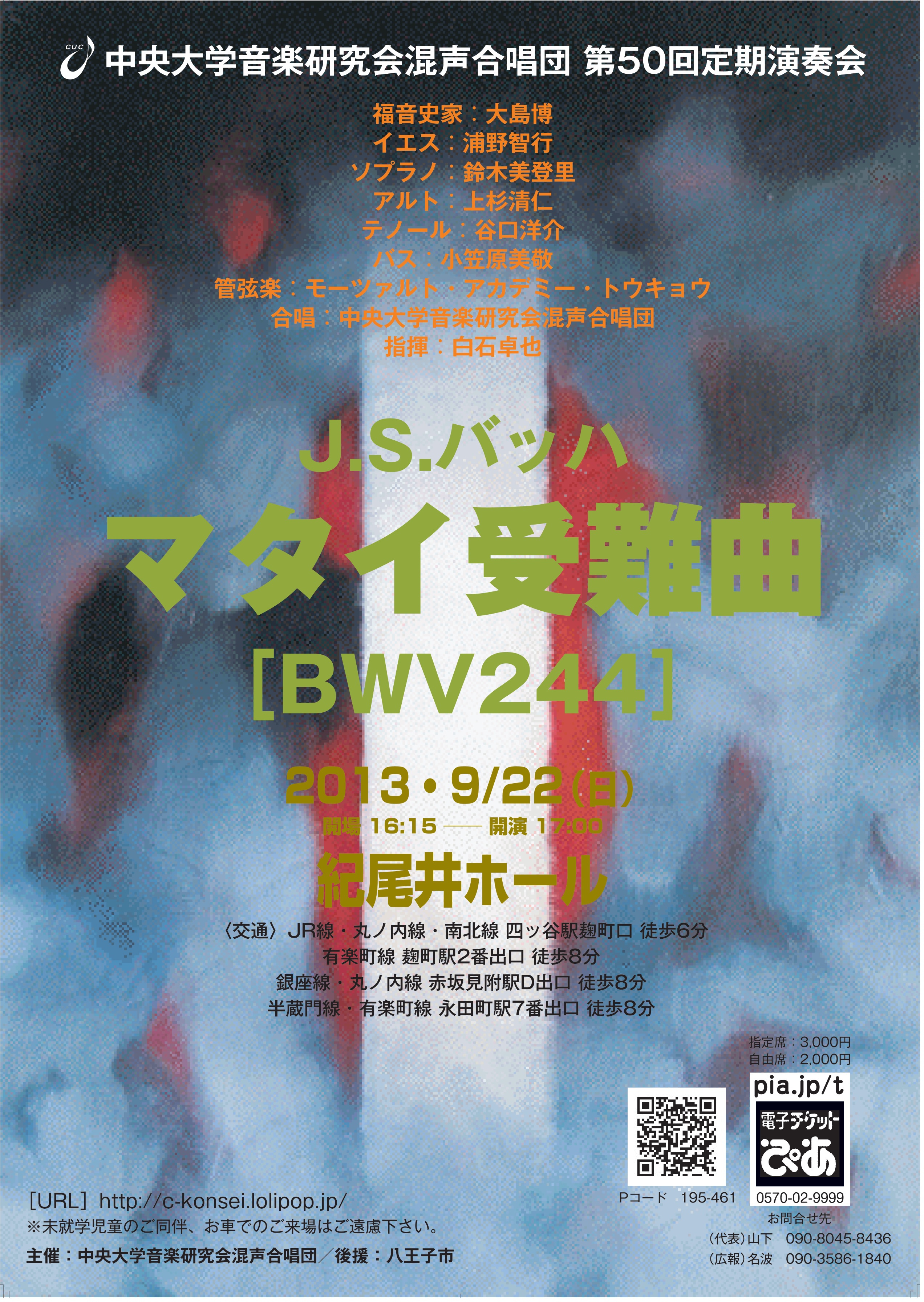 | ‘æ50‰ñ ’èŠú‰‰‘t‰ï 2013.9.22 | ƒoƒbƒn<ƒ}ƒ^ƒCŽó“ï‹È BWV244> | ”’Αì–ç | ‘哇”Ž@‰Y–ì’qs —é–Ø”ü“o—¢@ã™´m ’JŒû—m‰î@¬Š}Œ´”üŒh | ƒ‚[ƒcƒ@ƒ‹ƒgEƒAƒJƒfƒ~[EƒgƒEƒLƒ‡ƒE | ‹I”öˆäƒz[ƒ‹ | ”ª‰¤ŽqŽs |